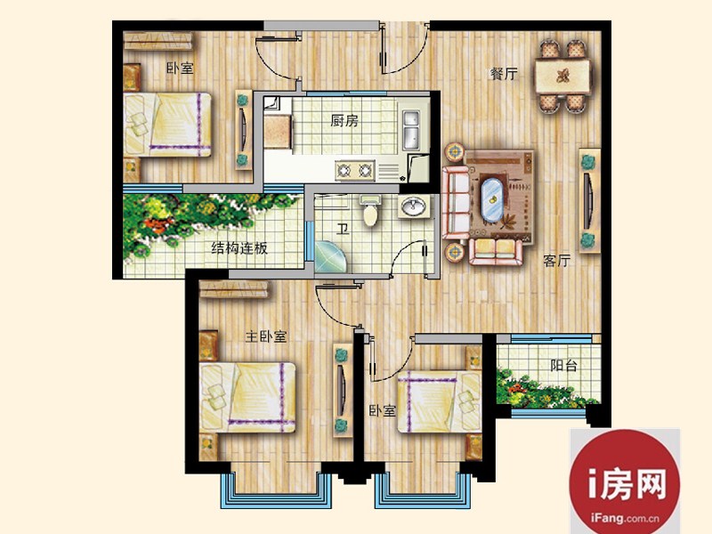绿地·大城天地B2a户型3室2厅1卫1厨 88.00㎡.jpg